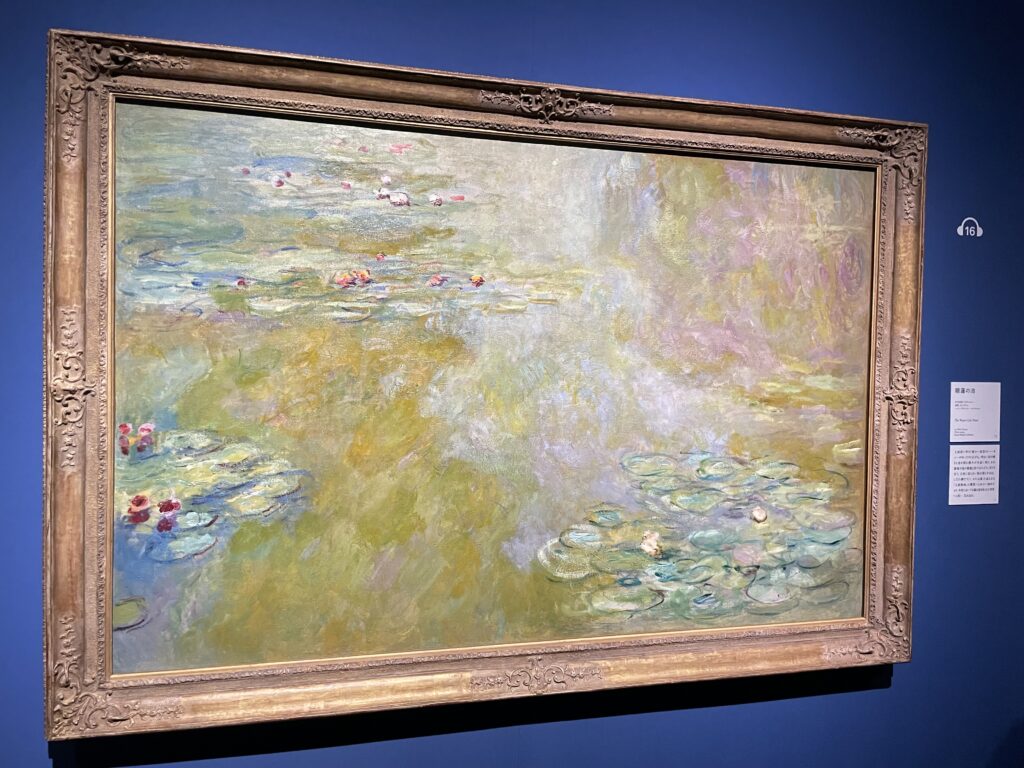 Le deuxième weekend du mois, c’était expo Monet à Ueno. Je ne sais pas si j’arriverai à différencier un jour les différents musées de ce quartier où il y a une possibilité d’avoir une expo impressionniste. J’étais persuadée que c’était celui au fond près de l’entrée du zoo, mais non c’était celui en face de la sortie de la gare, à côté de la salle de concert. J’ai honnêtement très peu de souvenirs de l’expo, c’était centré sur les séries du peintre et je crois que depuis le temps j’aurais dû prendre des notes pour savoir quand et où j’ai vu tel ou tel de ses tableaux. Bon, quand même je sais que ce qui vient par exemple d’Orsay ou de Chicago, normalement c’est certain que j’ai vu ! Les nymphéas c’est pas forcément ma série préférée (je suis plutôt meules ou cathédrale de Rouen) mais là il y en a un que j’ai bien apprécié (seule photo de l’expo que j’ai prise mais le cartouche est pas lisible je sais plus d’où il vient !).