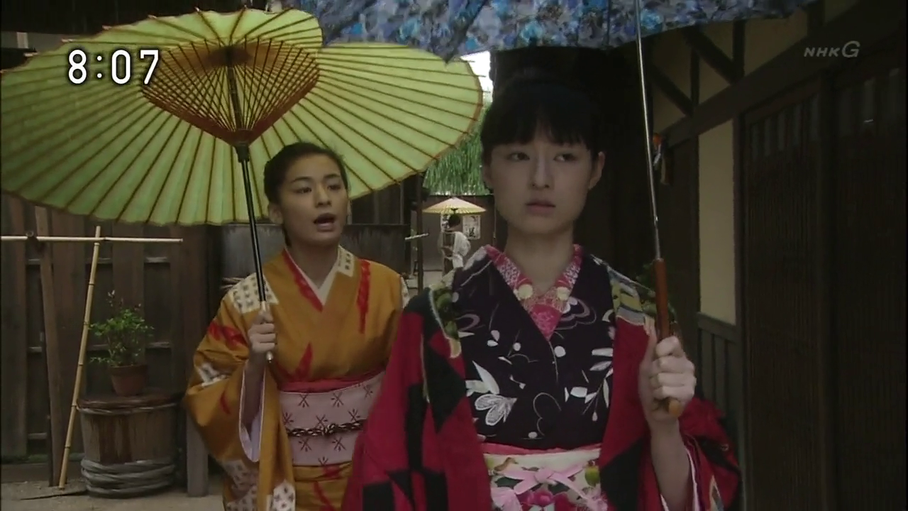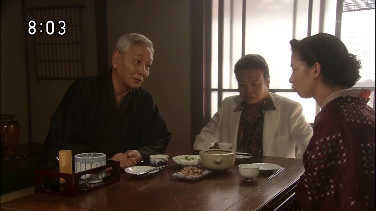Le père d’Itoko et chef de la famille Ohara, Zensaku, est incarné par Kobayashi Kaoru, que j’ai retrouvé avec grand plaisir après Shinya Shokudô. Le personnage n’a rien de l’imperturbable master derrière son comptoir, et on adore le détester pour sa mauvaise foi (lets choses se font quand lui l’a décidé, et pas quelqu’un d’autre !), sa lâcheté (il n’ose pas faire face à sa belle-famille et envoie sa fille recouvrir ses créances) et ses accès de colère auxquels Itoko va se confronter bien des fois en toute connaissance de cause. Mais les chiens ne font pas des chats, et c’est à voir lequel sera le plus têtu des deux. Par la suite, on ne peut s’empêcher de sourire quand on voit que le schéma se reproduit quand Itoko va assumer le rôle de parent. Avec quelques variations dues au changement d’époque ^^.