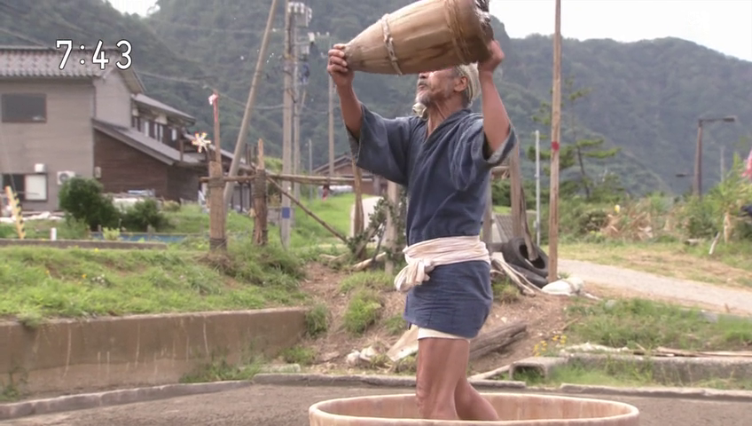 A travers le couple Okesaku, on a un bel aperçu de la production traditionnelle de sel et j’ai aimé cet élément du drama. Il faut dire que Tanaka Min, qui incarne Ganji, a sacrément la classe : j’avais appris quelque temps avant qu’il est à la base danseur, et la manière dont ses gestes sont mis en scène lorsqu’il jette de l’eau de mer le montre bien. Pas commode au premier abord, sa femme Fumi se révèle à la fois bienveillante et espiègle. J’avais trouvé Tanaka Yûko excellente dans Mother où elle a un rôle très dramatique (elle semble tout aussi efficace dans Woman, que je n’ai pas encore vu). Ici, elle est adorable dans ce rôle très léger ! La manière dont les Okesaku vont se prendre d’affection pour chacun des membres de la famille Tsumura est vraiment touchante.