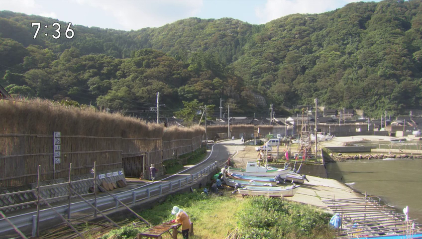 Tout ce qui tourne autour de la laque de Wajima et le fait de vouloir redynamiser cet artisanat pour mieux le préserver est intéressant et rappelle Chiritotechin et ses baguettes. Outre la production de sel, on a aussi un aperçu du festival de Wajima et de pas mal d’autres choses concernant la région de Noto. Je sais que là encore, ça fait partie du jeu de mettre en vedette une région du Japon dans le feuilleton du matin, mais là des fois on a quand même un peu trop l’impression d’être dans une des 30000 émissions télé japonaises de voyage et de gastronomie ! Mais quand même le but est atteint, même si c’est un coin paumé où y’a pas de train, ça donne envie ^^.
