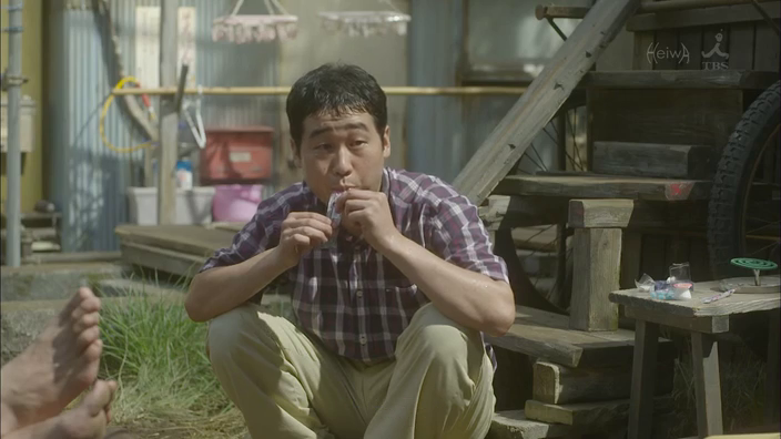 Dès le premier épisode, Okashi no ie m’a fait pensé à Shinya shokudô. Outre le fait de se centrer sur un lieu précis dans un vieux quartier de la capitale et d’avoir des épisodes qui durent une petite demi-heure, les deux drama ont en commun de s’intéresser dans une ambiance douce-amère et un peu décalée à une population presque marginale. En gros, pas aux salariés en costume ou aux jeunes élèves ou étudiants qui forment la partie la plus visible de la société. Mais aux petits commerçants, à une femme divorcée, ou encore à une femme âgée. J’étais persuadée que les deux séries étant produites par TBS, elles avaient forcément du staff en commun. Mais même pas !