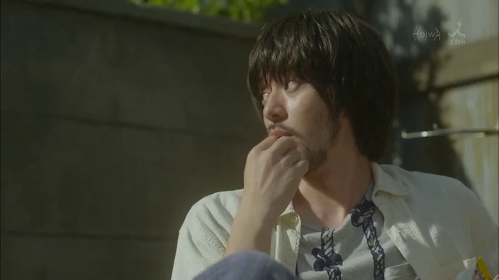 Sans surprise, Odagiri Joe est brillant dans le rôle de Tarô, grand gamin un peu maladroit qui veille sur sa grand-mère. Dit comme ça, c’est très plat, ça fait presque héros parfait, je devrais rien dire sur les personnages tiens ! Katsuji Ryô n’a rien à lui envier dans le rôle de Saegusa. J’ai pu également retrouver deux des actrices de Saikou no rikon, dont les personnages ont en plus une relation assez semblable : Ono Machiko est bien sûr parfaite dans le rôle de Reiko, et Yachigusa Kaoru, qui incarne Akiko, la grand-mère de Tarô, est toujours aussi adorable. En fait, elle n’a même pas besoin de jouer, elle est simplement l’incarnation de la grand-mère bienveillante :). Maeno Tomoya et Shimada Kyûsaku complètent la bande de Tarô dans les rôles respectifs de Kameda et Shimazaki, le doyen du groupe qui tient les bains publics du quartier.