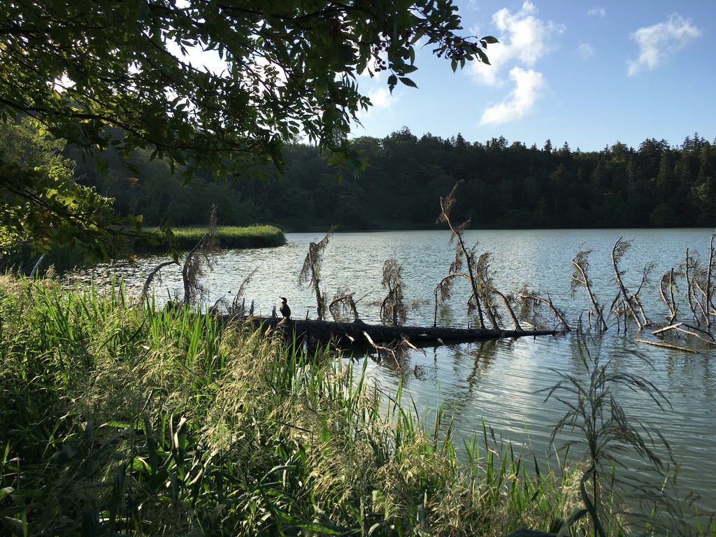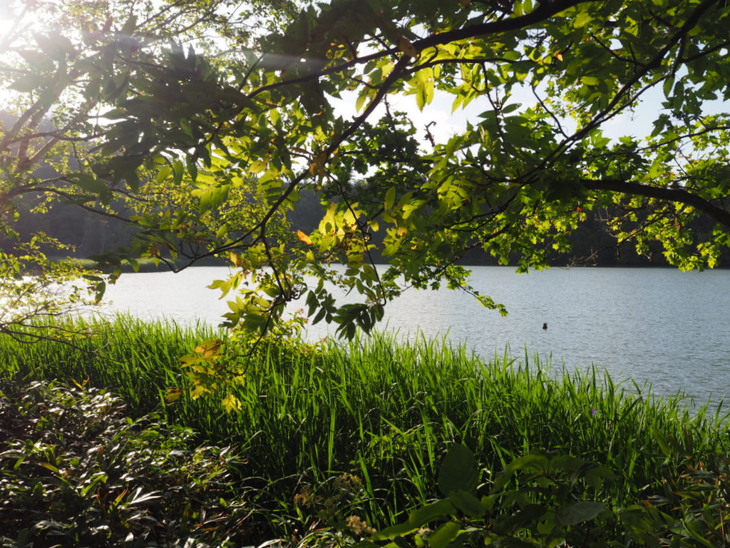 Il nous restait du temps avant de rendre la voiture, nous avons donc fait un dernier arrêt et nous avons vraiment bien fait. Une route escarpée nous a menés un peu en hauteur jusqu’à un parking. A deux pas de là, l’étang Himenuma, qui offre une vue magnifique sur le Rishirifuji. Alors que l’océan était omniprésent depuis le début de notre mini road-trip, tout d’un coup ce n’était plus que la montagne et la forêt. La fin de journée avec le soleil déclinant était en plus vraiment un bon moment pour être à cet endroit ! La batterie de mon Olympus m’a lâchée (gag récurrent), mais les photos que j’ai prises avec mon iPhone rendent suffisamment bien !