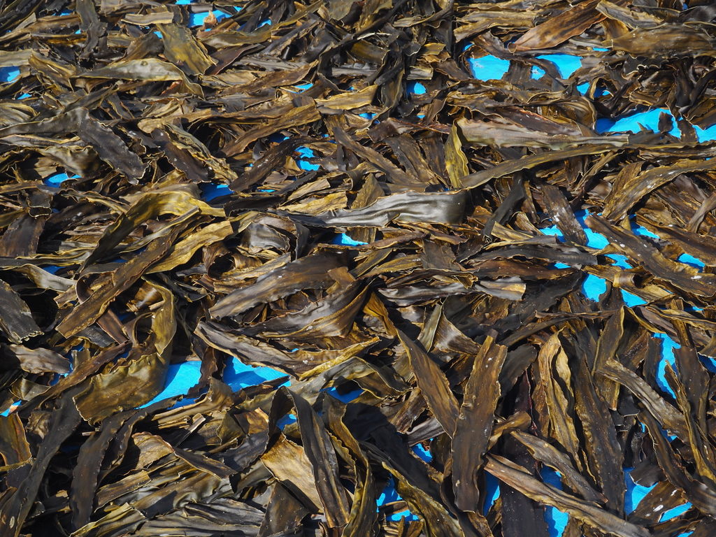Nous nous sommes arrêtés aussi à un endroit qui témoignait de l’une des principales activités de l’île : la récolte du konbu, cette algue essentielle dans la cuisine japonaise. Le konbu de Rishiri est l’un des plus connus il me semble. On a pu en voir plein étalé au sol à sécher au soleil, et on a visité une petite boutique pour en ramener en souvenir. Je m’en suis servi pour faire le bouillon de base de mes soupes miso, après l’autochtone et Messire aiment bien manger les morceaux qui ont bien mijoté !