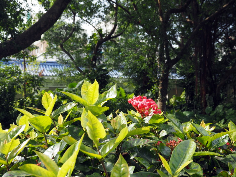 Une fois repus, nous avons pu reprendre notre chemin en nous arrêtant en route dans un petit centre commercial avec une salle d’allaitement pour que Messire puisse finir son repas, et un peu plus loin dans une petite boutique servant des jus de fruits frais (je ne sais même plus lequel j’ai choisi, c’était allongé à l’eau je crois mais c’était bien désaltérant !). Nous sommes passés devant un bâtiment assez pittoresque avec un arbre qui poussait à l’intérieur (j’ai mis des photos avec un angle différent dans l’album à la fin de cet article).