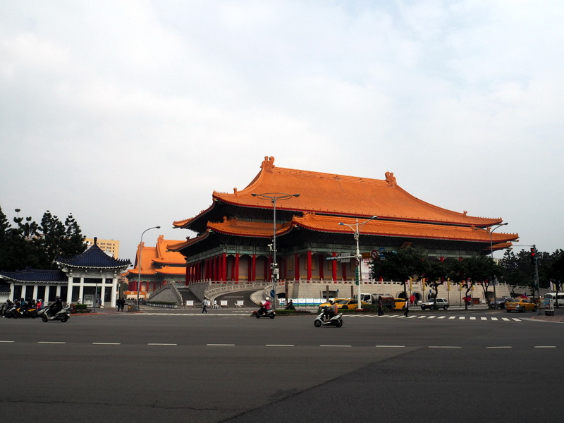 Après un petit article introductif, il est temps de rentrer dans le vif du sujet et de raconter un peu notre première journée à Taiwan, que nous avons passée au coeur de Taipei. Nous n’avions pas du tout prévu d’itinéraire précis, mais nous avons assez logiquement décidé de commencer par deux des incontournables de la capitale. Comme les distances nous paraissaient raisonnables et que le temps était beau, nous avons décidé de nous passer des transports en commun dans un premier temps et sommes partis en vadrouille à pieds avec le carrosse de Messire. C’était sympa de se diriger un peu au hasard des rues vers notre destination et de voir un peu le Taipei du quotidien.