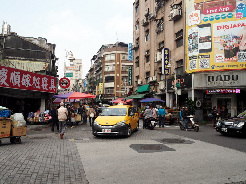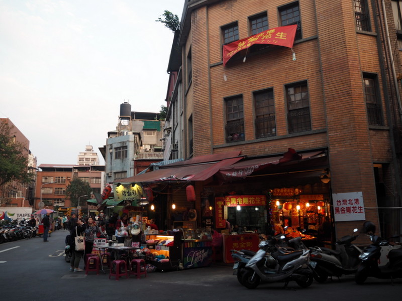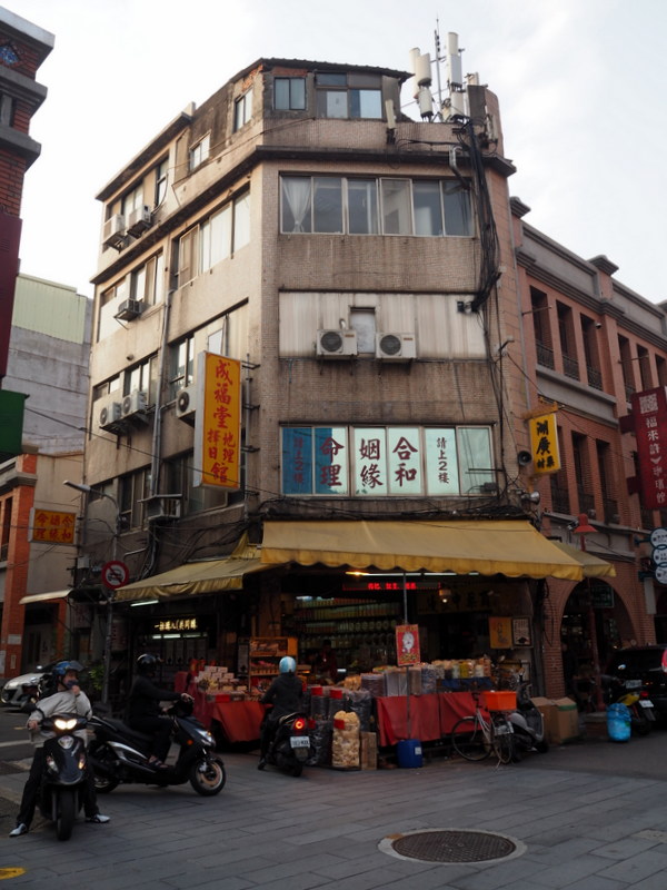 Cette pause sucrée nous a redonné de l’énergie pour marcher de nouveau jusqu’à notre dernière destination du jour, le quartier commercial historique de Dadaocheng autour de la rue Dihua. On y trouve aussi beaucoup de constructions anciennes en briques. J’ai trouvé dans une des petites rues une boutique super chouette où j’ai acheté plusieurs souvenirs et des cartes postales mignonnes bien plus sympa que les traditionnelles photos de monuments ou vues de la ville. Apparemment, l’enseigne a plusieurs autres adresses à Taipei. On a vu plusieurs autres boutiques avec des jolies choses et du thé par exemple, comme chaque fois je me suis dit qu’il fallait pas tout acheter dès qu’on voyait quelque chose mais au bout du compte on n’a pas ramené dans de choses que ça.